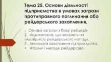 Тема 25 Основи діяльності підприємства в умовах загрози