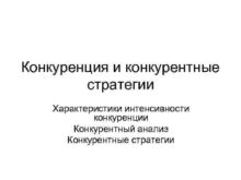 Конкуренция и конкурентные стратегии Характеристики интенсивности конкуренции Конкурентный