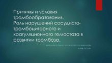 Причины и условия тромбообразования Роль нарушений сосудистотромбоцитарного и