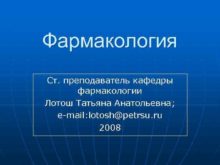 Фармакология Ст преподаватель кафедры фармакологии Лотош Татьяна Анатольевна