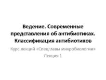 Ведение Современные представления об антибиотиках Классификация антибиотиков Курс