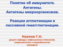 Понятие об иммунитете Антигены микроорганизмов Реакции агглютинации и