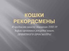 КОШКИ РЕКОРДСМЕНЫ Я предлагаю вашему вниманию ТОП 10