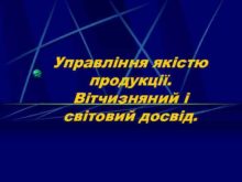Управління якістю продукції Вітчизняний і світовий досвід