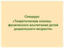 Спецкурс Теоретические основы физического воспитания детей дошкольного возраста