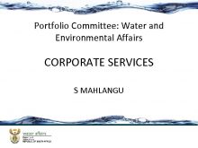 Portfolio Committee Water and Environmental Affairs CORPORATE SERVICES