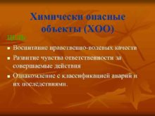 Химически опасные объекты ХОО ЦЕЛЬ n Воспитание нравственно-волевых