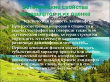 Эстетические свойства ландшафтов и их оценка Эстетическая ценность