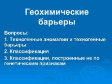Геохимические барьеры Вопросы 1 Техногенные аномалии и техногенные