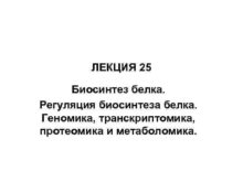 ЛЕКЦИЯ 25 Биосинтез белка Регуляция биосинтеза белка Геномика