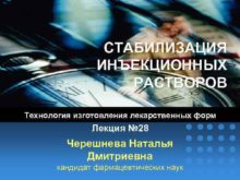 СТАБИЛИЗАЦИЯ ИНЪЕКЦИОННЫХ РАСТВОРОВ Технология изготовления лекарственных форм Лекция