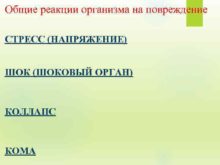 Общие реакции организма на повреждение СТРЕСС НАПРЯЖЕНИЕ ШОК