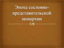 Эпоха сословно представительской монархии Образование сословно представительской