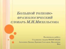 БОЛЬШОЙ ТОЛКОВОФРАЗЕОЛОГИЧЕСКИЙ СЛОВАРЬ М И МИХЕЛЬСОНА Выполнили работу
