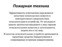 Пожарная техника Эффективность огнегашения определяется качеством используемых веществ