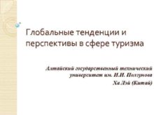Глобальные тенденции и перспективы в сфере туризма Алтайский