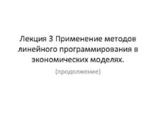 Лекция 3 Применение методов линейного программирования в экономических