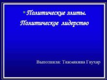 Политические элиты Политическое лидерство Выполнила Тажмакина Гаухар