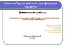 Каменск-Уральский многопрофильный техникум Дипломная работа Технология технического обслуживания