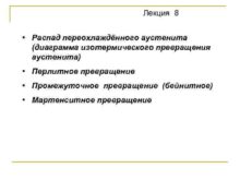Лекция 8 Распад переохлаждённого аустенита диаграмма изотермического