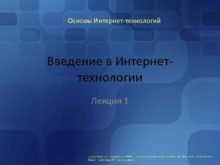 Основы Интернет-технологий Введение в Интернеттехнологии Лекция 1