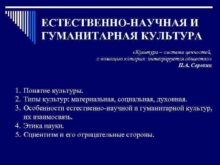 ЕСТЕСТВЕННО-НАУЧНАЯ И ГУМАНИТАРНАЯ КУЛЬТУРА Культура система ценностей