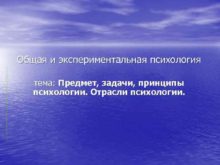 Общая и экспериментальная психология тема Предмет задачи принципы