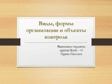 Виды формы организации и объекты контроля Выполнила студентка