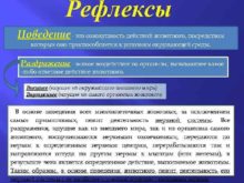 Рефлексы Поведение — это совокупность действий животного посредством
