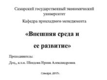 Самарский государственный экономический университет Кафедра прикладного менеджмента Внешняя