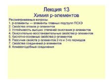 Лекция 13 Химия p-элементов Рассматриваемые вопросы 1 р-элементы
