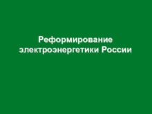 Реформирование электроэнергетики России Электроэнергетика в современной экономике