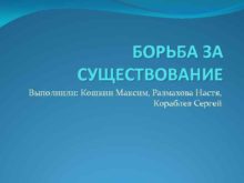 БОРЬБА ЗА СУЩЕСТВОВАНИЕ Выполнили Кошкин Максим Размахова Настя