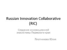 Russian Innovation Collaborative RIC Создание инновационной экосистемы Пермского