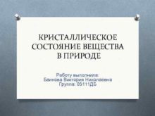 КРИСТАЛЛИЧЕСКОЕ СОСТОЯНИЕ ВЕЩЕСТВА В ПРИРОДЕ Работу выполнила Баинова