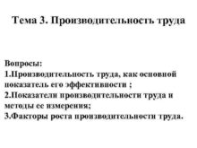 Тема 3 Производительность труда Вопросы 1 Производительность труда