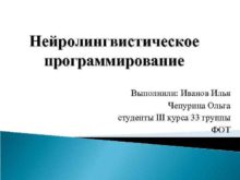 Нейролингвистическое программирование Выполнили Иванов Илья Чепурина Ольга студенты