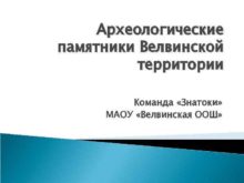 Археологические памятники Велвинской территории Команда Знатоки МАОУ Велвинская