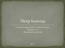 Петр Капица Студентка факультета Архитектура Группы А-12 Малькова
