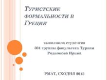 ТУРИСТСКИЕ ФОРМАЛЬНОСТИ В ГРЕЦИИ выполнила студентка 304 группы