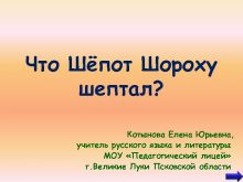 Что Шёпот Шороху шептал Котынова Елена Юрьевна учитель