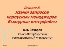 Лекция 8 Языки запросов корпусных менеджеров Выходные интерфейсы
