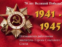70 лет Великой Победы Посвящается работникам института- Героям