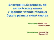 Электронный словарь по английскому языку Правила чтения гласных