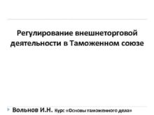 Регулирование внешнеторговой деятельности в Таможенном союзе Вольнов И