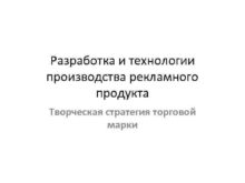 Разработка и технологии производства рекламного продукта Творческая стратегия