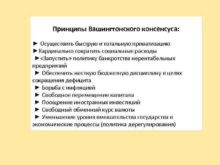 Принципы Вашингтонского консенсуса Осуществить быструю и тотальную