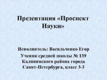 Презентация Проспект Науки Исполнитель Васильченко Егор Ученик средней