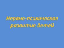 Нервно-психическое развитие детей Нервно-психическим развитием НПР ребенка