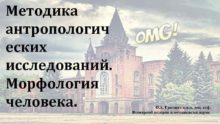 Методика антропологич еских исследований Морфология человека О А